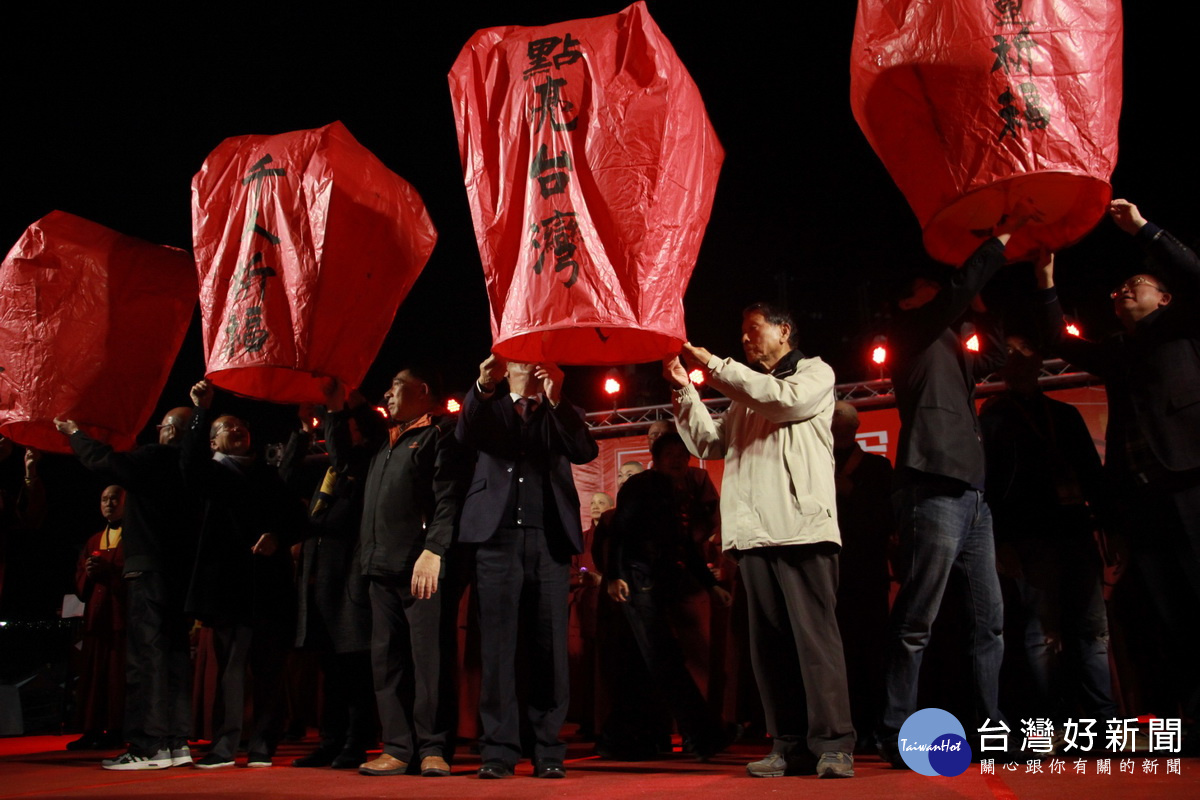 南投燈會施放天燈為災民及台灣祈福加油。
