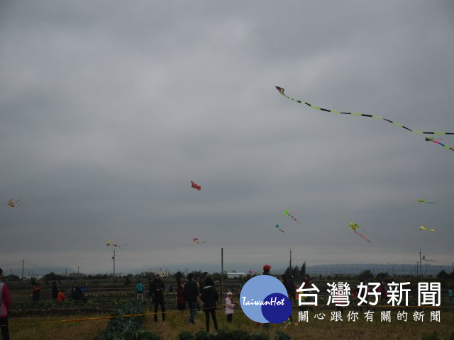 數百風箏翱翔天空煞是美觀、200人在二十餘座燒柴爌窯,親情加友情,大甲區第二屆風箏節完美熱鬧的在田間舉行。(記者陳榮昌攝)