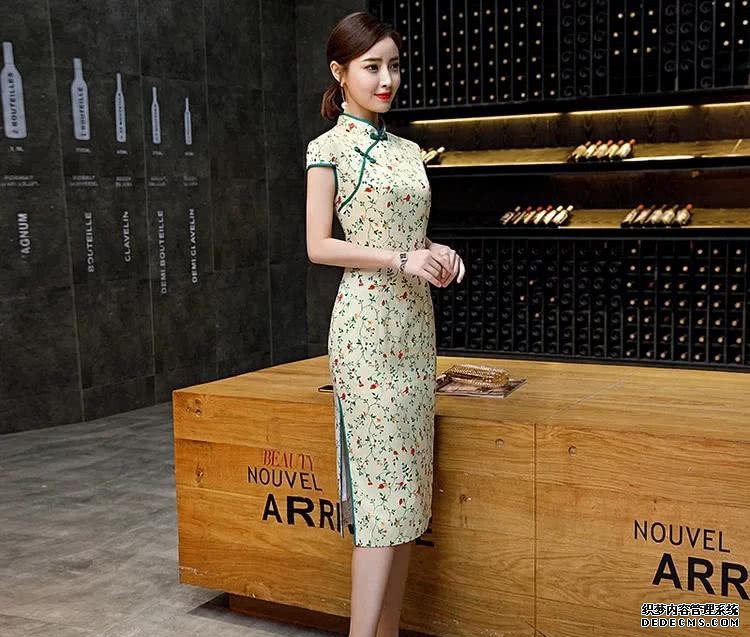 清新脫俗印花旗袍,精美款
