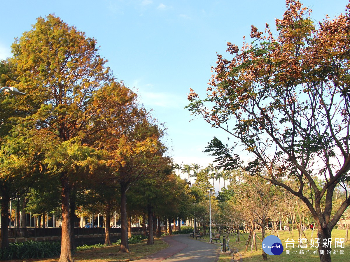 褪去綠衣漸漸轉色的落羽松也開始嶄露芳姿(圖/北市公園處提供)