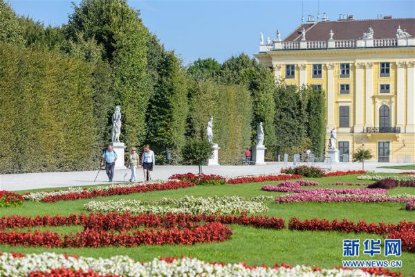 這是9月21日拍攝的奧地利維也納美泉宮花園內景色。 夏末秋至時節,奧地利維也納當日天氣晴好、溫度適宜,不少市民選擇來到維也納市著名的美泉宮花園內休閑、賞景。 新華社記者 郭晨 攝