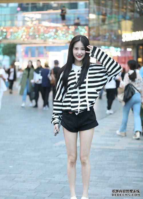 生活中穿搭出自己的快樂才會顯得更加靚麗,這位可愛的小女生穿着黑白橫杠的休閑上衣,寬鬆的服飾顯得輕鬆漂亮,黑色的小短褲搭配小白鞋帶來清新的校園風格,年輕的女孩找到合適自己的風格才最能彰顯美麗。