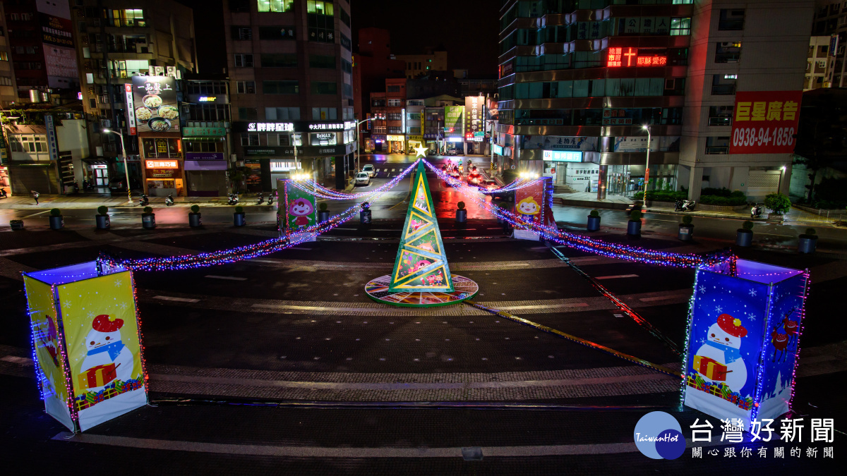桃園市政府秘書處首度在府前廣場打造一座「原瘋魔法帽」聖誕裝置藝術。