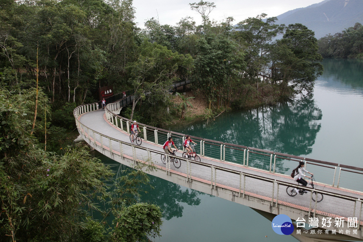 踩踏雙輪,徜徉於CNNGO票選全球十大最美自行車道的日月潭環潭公路山水風光。